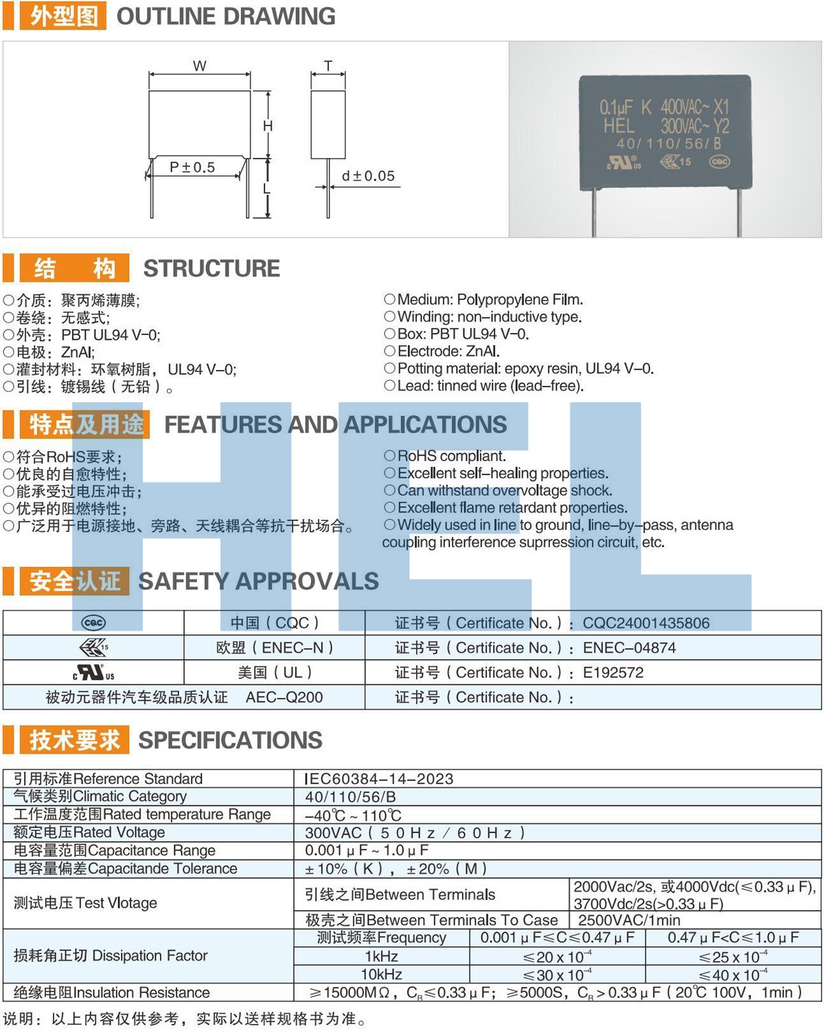 MPY塑料外殼金屬化聚丙烯薄膜抗干擾電容器(Y2)